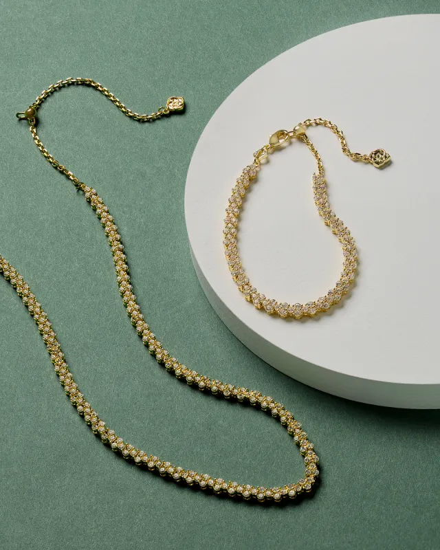 A little luxury goes a long way with the Emery Gold Tennis Bracelet in White Crystal. This stunning strand of sparkling crystals evokes a timeless glamour that’s undeniable. Paired with your favorite watch or a statement cuff, this bracelet gives you the look of fine jewelry for less.